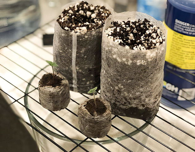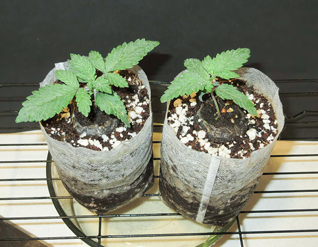 Многие гроверы считают, что для такого маленького горшочка и тем более для таких маленьких растишек это слишком много. Но, по моему мнению, в торфе остается ровно то количество воды с растворенными в ней питательными веществами, которое он может впитать, остальное сольется в дренаж. По крайней мере, выглядят они отлично и к концу второй недели уже сформировали второй этаж с трехпалыми листьями.