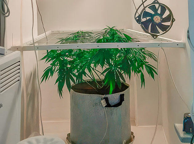 Работал я в своем привычном гроубоксе, который по размерам тянет примерно на 1,35 м в длину, 0,8 м в ширину (к концу — около метра) и 1,9 м в высоту. Основным источником света служила лампа ДНаТ мощностью 250 Вт в култюбе, в помощь ей установил проверенную «Бества1000» на самсунговских диодах. Горшок на 25 литров, с дренажем из пенопласта. Дополнительно для здоровья корневой зоны организовал аэрацию и сделал самодельный генератор CO2 из баллона.